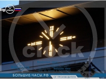 Как и всегда, светящиеся элементы фасадных часов успешно прошли заводские испытания на работоспособность и надежность. На объекте момент включения и выключения подсветки определяется реле времени.