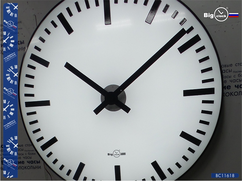 Особенность этой модели — внутренняя равномерная засветка циферблата, обеспечивающая чёткое отображение времени в любое время суток. Такая система подсветки позволяет избежать бликов и теней, делая уличные часы удобными для чтения как с близкого расстояния, так и с улицы.