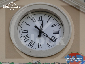 Диаметр часов составил 1250 мм, выбор часовой станции сделан в пользу ЧС-БК-2к. Часы для детского кинотеатра сделаны с боем, также конструкция предполагает наличие внутренней подсветки, которую должен произвести Заказчик проекта.